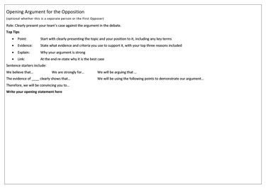 - Promote research and argument building skills
