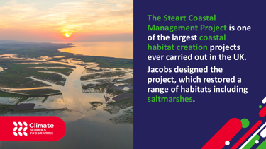 The Steart Coastal Management Project is one of the largest of its kind in the UK. The project included coastal realignment, and restoration of saltmarshes to reduce the risk of flooding in the area.