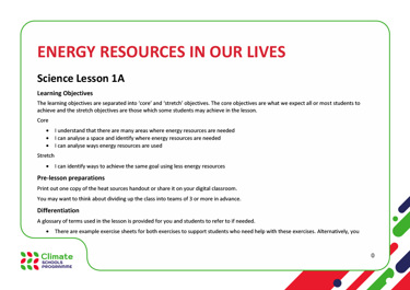 This is science lesson 1A of the Climate Schools Programme. The lesson is designed to:Â