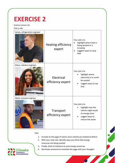 - Challenge students to think about how energy could be used more efficiently in their everyday lives