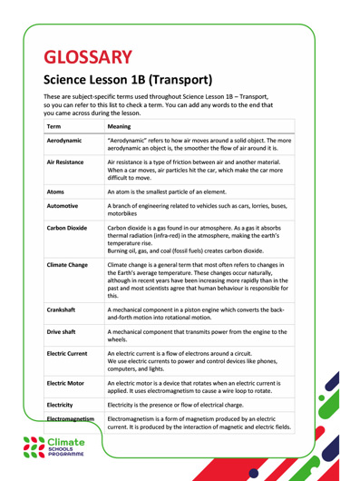 This is science lesson 1B (transport) of the Climate Schools Programme. The lesson is designed to:Â