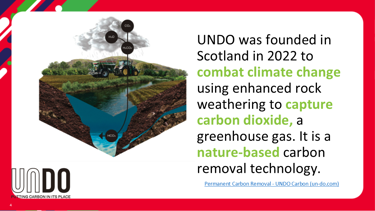 Scotland-based UNDO use nature-based rock weathering technology to capture carbon. Introduce your students to the science behind carbon capture, and the team behind UNDO with this resource package.