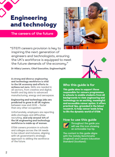 We're here to help inspire young people with careers in engineering and technology. This resource has been designed for Careers Leaders working in secondary schools, with students aged 11 to 18.