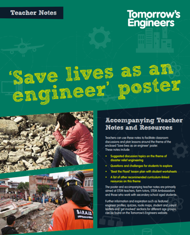 These teacher notes accompany the Save lives as an engineer poster. Download it and use these teacher notes to support you to deliver an inspiring curriculum-linked lesson plan.